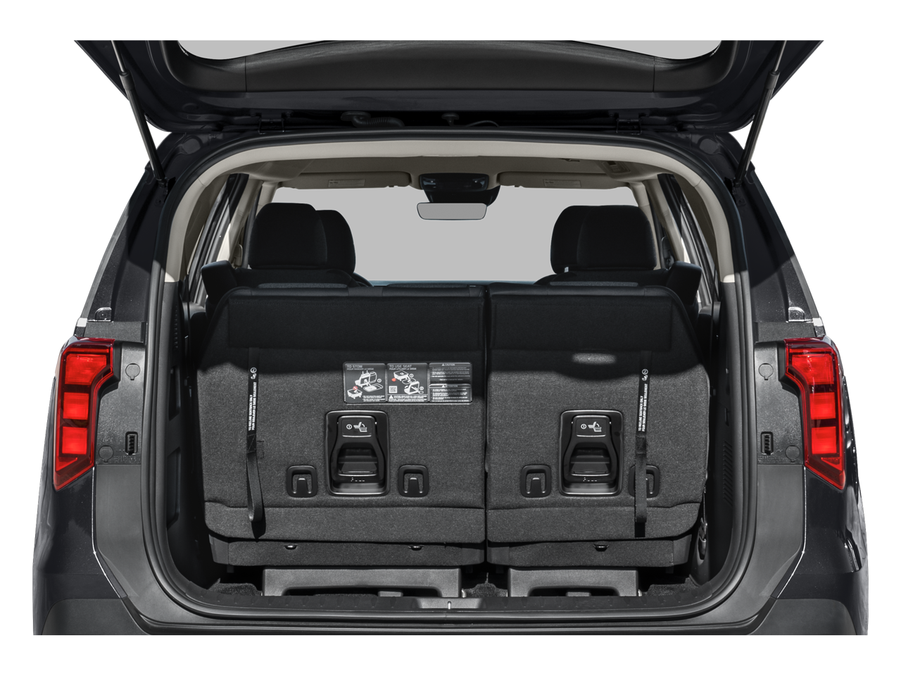 - Fixed 60-40 Split-Bench 3rd Row Seat Front, Manual Recline, Manual Fold Into Floor, 3 Manual and Adjustable Head Restraints