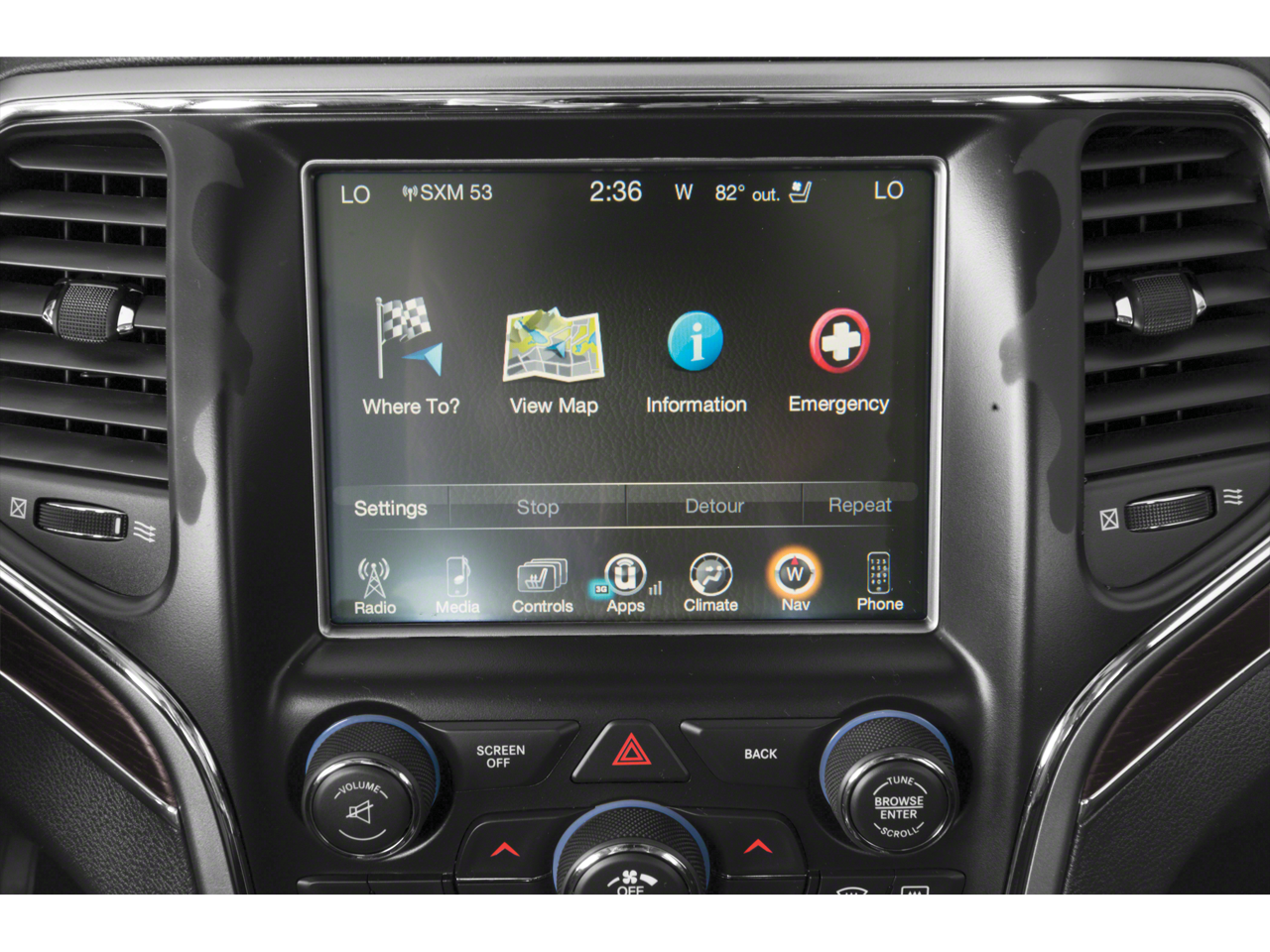 Step inside and be enveloped in the luxurious Sangria Metallic Clearcoat interior, featuring premium Laguna leather seats, a heated steering wheel, and a state-of-the-art Uconnect 4C Nav system with an 8.4-inch touchscreen display. Enjoy the convenience of a power liftgate, remote keyless entry, and a ParkView Rear Back-Up Camera, as well as the added peace of mind provided by advanced safety features like Blind Spot Monitoring, Forward Collision Warning, and Adaptive Cruise Control.