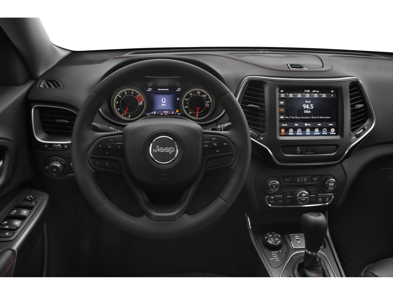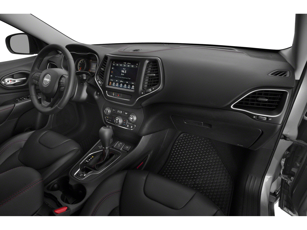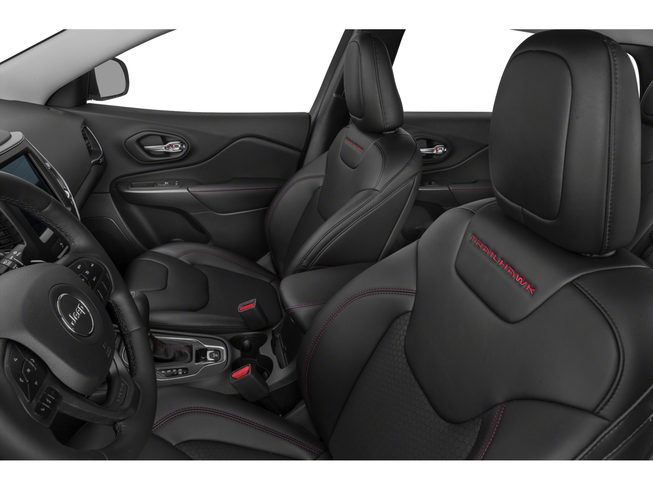 (3.517 Axle Ratio, (4-Wheel Disc Brakes, (6 Speakers, (ABS brakes, (Air Conditioning, (Alloy wheels, (AM/FM radio: SiriusXM, (Anti-whiplash front head restraints, (Apple CarPlay/Android Auto, (Auto-Dimming Rear-View Mirror, (Automatic temperature control, (AutoStick Automatic Transmission, (Auxiliary Transmission Oil Cooler, (Brake assist, (Cloth/Premium Vinyl Bucket Seats, (Comfort/Convenience Group, (Compass, (Delay-off headlights, (Driver door bin, (Driver vanity mirror, (Dual front impact airbags, (Dual front side impact airbags, (Electronic Stability Control, (Exterior Mirrors w/Memory, (Four wheel independent suspension, (Front anti-roll bar, (Front Bucket Seats, (Front Center Armrest, (Front dual zone A/C, (Front fog lights, (Front reading lights, (Fully automatic headlights, (Hands-Free Power Liftgate, (Heated door mirrors, (Heated front seats, (Heated steering wheel, (Hill Descent Control, (Illuminated entry, (K-Black Door Trim Panel Appliques, (K-Black Interior Accents, (Knee airbag, (Leather Shift Knob, (Low tire pressure warning, (Occupant sensing airbag, (Off Road Suspension, (Outside temperature display, (Overhead airbag, (Overhead console, (Panic alarm, (ParkView Rear Back-Up Camera, (Passenger door bin, (Passenger vanity mirror, (Power door mirrors, (Power driver seat, (Power Driver/Passenger 4-Way Lumbar Adjust, (Power Front Driver/Passenger Seats, (Power steering, (Power windows, (Premium Leather Package, (Premium Leather Trimmed Bucket Seats, (Quick Order Package 27E Trailhawk, (Radio data system, (Radio: Uconnect 4 w/8.4 Display, (Radio/Driver Seat/Exterior Mirrors Memory, (Rain sensing wipers, (Rear anti-roll bar, (Rear reading lights, (Rear seat center armrest, (Rear side impact airbag, (Rear window defroster, (Rear window wiper, (Remote keyless entry, (Security Alarm, (Speed control, (Speed-sensing steering, (Split folding rear seat, (Spoiler, (Steering wheel mounted audio controls, (Tachometer, (Telescoping steering wheel, (Tilt steering wheel, (Traction control, (Trip computer, (Turn signal indicator mirrors, (Universal Garage Door Opener, (Variably intermittent wipers, (Ventilated Front Seats, (Voltmeter, (Wheels: 17 x 7.5 Painted Diamond Cut Aluminum.