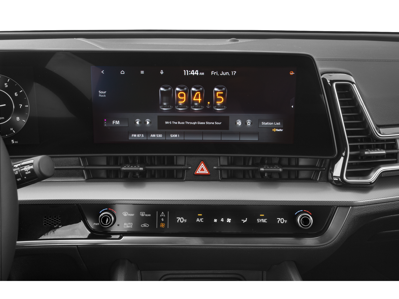 - Radio: AM/FM/HD Audio System -inc: 12.3" touchscreen w/navigation, 400 W w/HALOsonic harman/kardon sound system, 8 speakers including subwoofer, wired Apple Carplay and Android Auto, UVO telematics, voice recognition, SiriusXM, steering wheel mounted audio controls and Bluetooth® phone and streaming audio