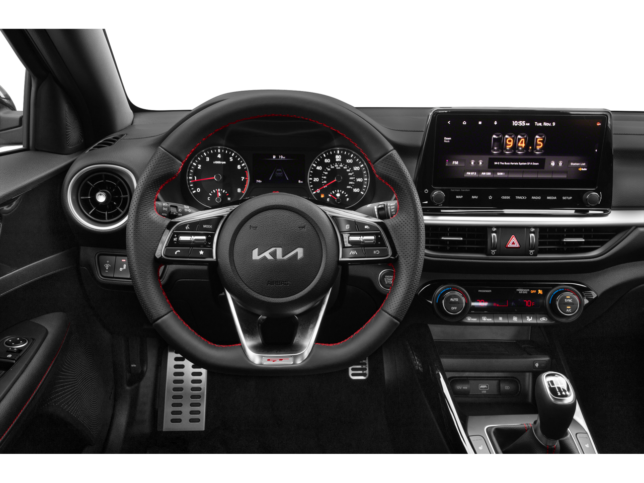 (4-Wheel Disc Brakes, (6 Speakers, (ABS brakes, (Air Conditioning, (Alloy wheels, (AM/FM radio: SiriusXM, (Apple CarPlay & Android Auto, (Auto High-beam Headlights, (Automatic temperature control, (Brake assist, (Bumpers: body-color, (Carpet Floor Mats, (Cloth & SynTex Seat Trim, (Delay-off headlights, (Driver door bin, (Driver vanity mirror, (Dual front impact airbags, (Dual front side impact airbags, (Electronic Stability Control, (Emergency communication system, (Exterior Parking Camera Rear, (Front anti-roll bar, (Front Bucket Seats, (Front Center Armrest, (Front dual zone A/C, (Front fog lights, (Front reading lights, (Front wheel independent suspension, (Fully automatic headlights, (GT-Line Premium Package, (harman/kardon® Premium Audio, (Heated door mirrors, (Illuminated entry, (Leather Shift Knob, (Leather steering wheel, (LED Interior Lighting, (Low tire pressure warning, (Navigation System, (Occupant sensing airbag, (Outside temperature display, (Overhead airbag, (Overhead console, (Panic alarm, (Passenger door bin, (Passenger vanity mirror, (Power door mirrors, (Power steering, (Power Sunroof, (Power windows, (Radio data system, (Radio: 10.25" Display Audio, (Rear seat center armrest, (Rear window defroster, (Remote keyless entry, (Security system, (Speed control, (Split folding rear seat, (Spoiler, (Sport steering wheel, (Steering wheel mounted audio controls, (Tachometer, (Telescoping steering wheel, (Tilt steering wheel, (Traction control, (Trip computer, (Turn signal indicator mirrors, (Variably intermittent wipers, (Wheels: 17" x 7.0 Alloy, (Wireless Charging.