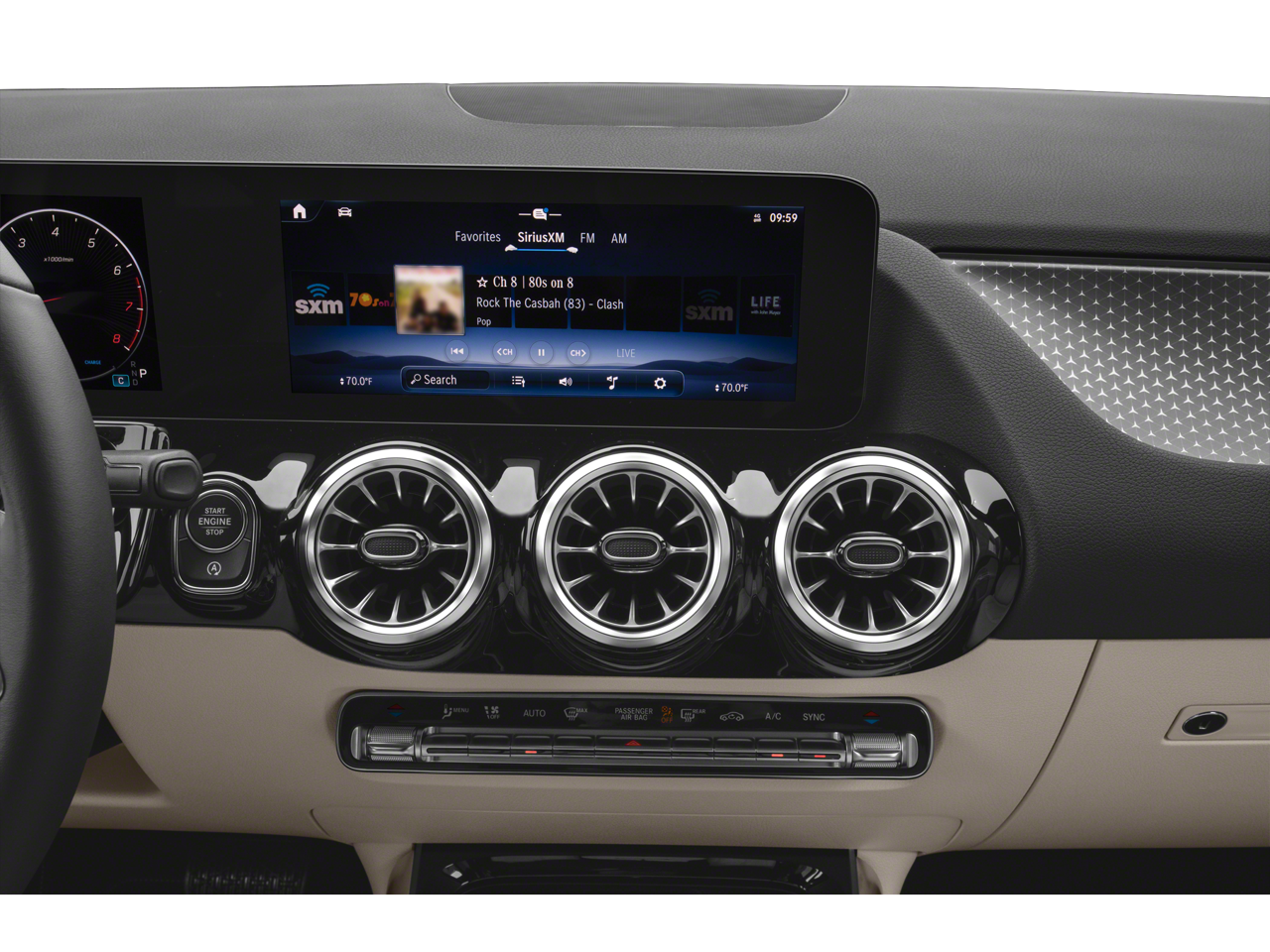 - Radio: Mercedes-Benz User Experience (MBUX) -inc: 10.25" touchscreen multimedia display, 4 USB-C ports (adapter will be required to connect to USB-A devices), SiriusXM satellite radio, Bluetooth® connectivity, smartphone integration, voice control including natural language understanding and keyword activation 'Hey Mercedes' and Mercedes me connect services w/trial period